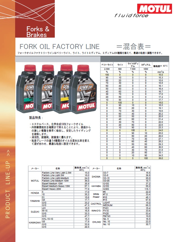 フォークオイルはMOTUL FACTORY LINEを使用しています。