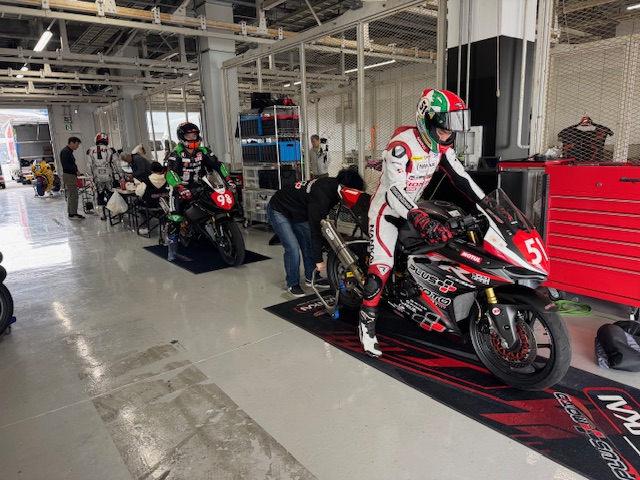 8耐ライダーにプラスモトのマシンを乗ってもらいます。