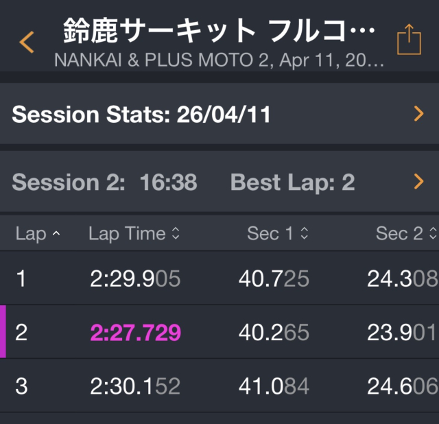 午前中の走行はサスペンションの仕様変更の感触も良く