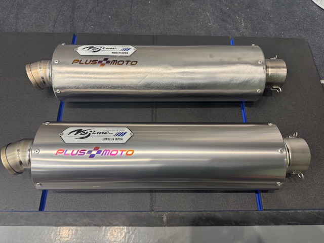 先日のスポーツ走行で転倒破損したマフラーを修理してもらいました。